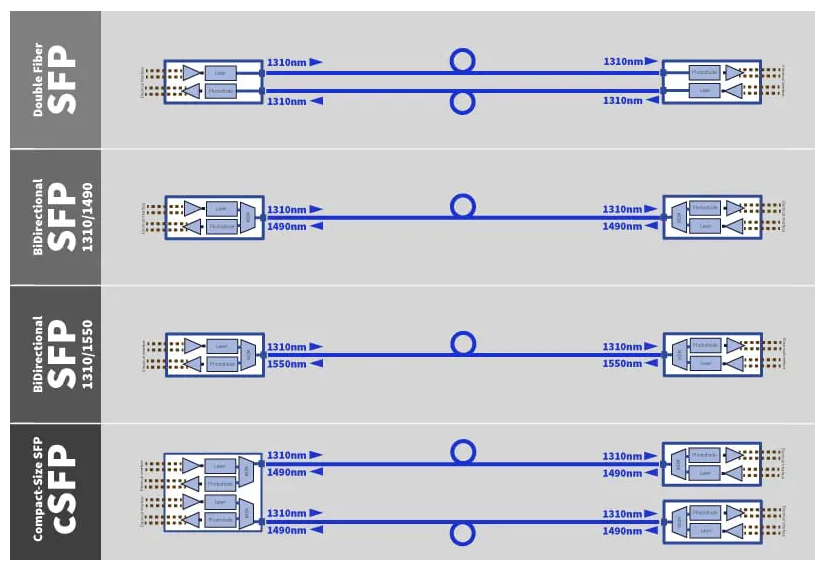 Application Scenarios: FiberTop CSFP+ modules are primarily used for point-to-point connections from Central Offices/Aggregation Sites to Customer Premises Equipment (CPE). By doubling the port density at the Central Office/Aggregation Site while reducing the number of ports used, CSFP+ modules contribute to decreased power consumption at the central location. It is important to note that CSFP+ modules require equipment and line cards that support the CSFP interface, as ordinary devices can only test the first channel of the CSFP+ module. |