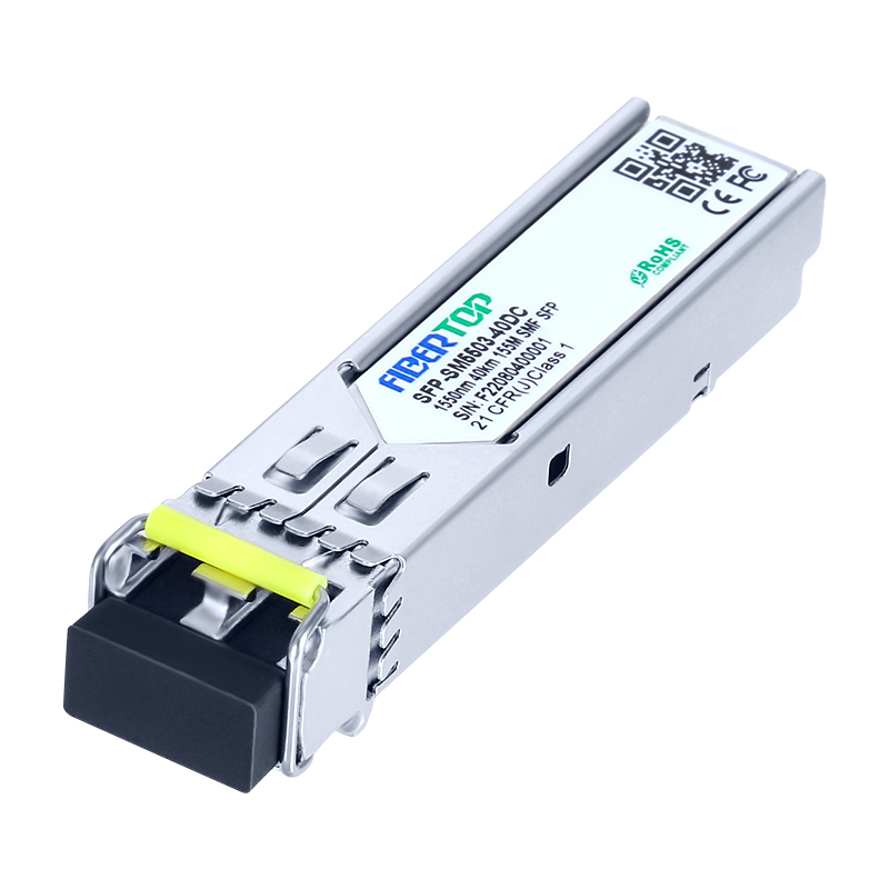 SKU: SFP-SM5503-40DC   Product Highlights   Supports up to 155Mbps bit rates   Hot-pluggable SFP footprint   1550nm DFB laser and PIN photo detector, Up to 40km for SMF transmission   Compliant with SFP MSA and SFF-8472 with duplex LC receptacle   Compatible with RoHS   Single +3.3V power supply   Real Time Digital Diagnostic Monitoring