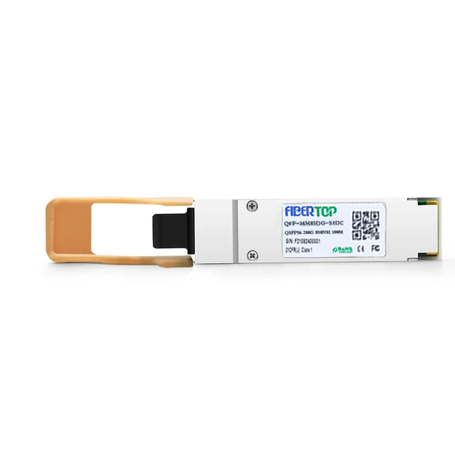 SKU: QFP-MM85DG-S1DC   Product Highlights   Hot Pluggable QSFP56 Transceiver   Supports 212,5Gbps aggregate bit rate   Up to 53.125Gbps data rate per channel   SFF-8665 compliant QSFP56 port;SFF-8636 compliant I2C management   Compliant with IEEE802.3cd 200GBASE-SR4   MPO-12 connector receptacle with UPC end-face   Maximum link length of 100m on OM4 MMF